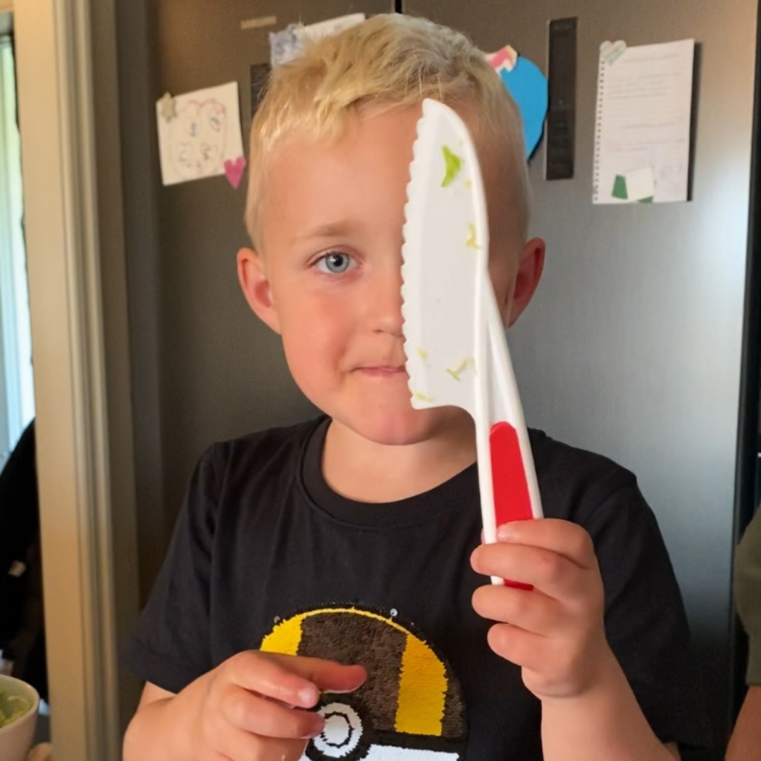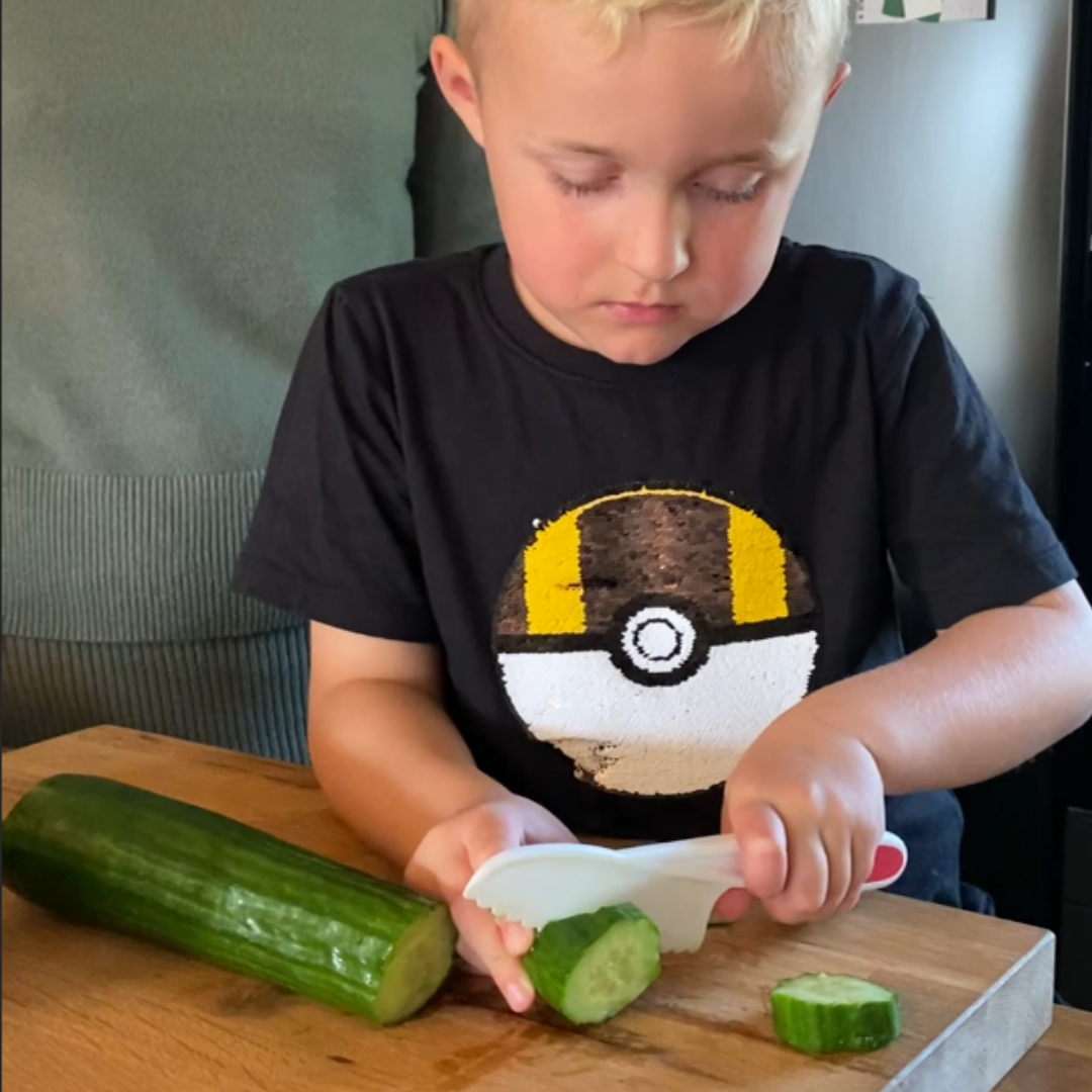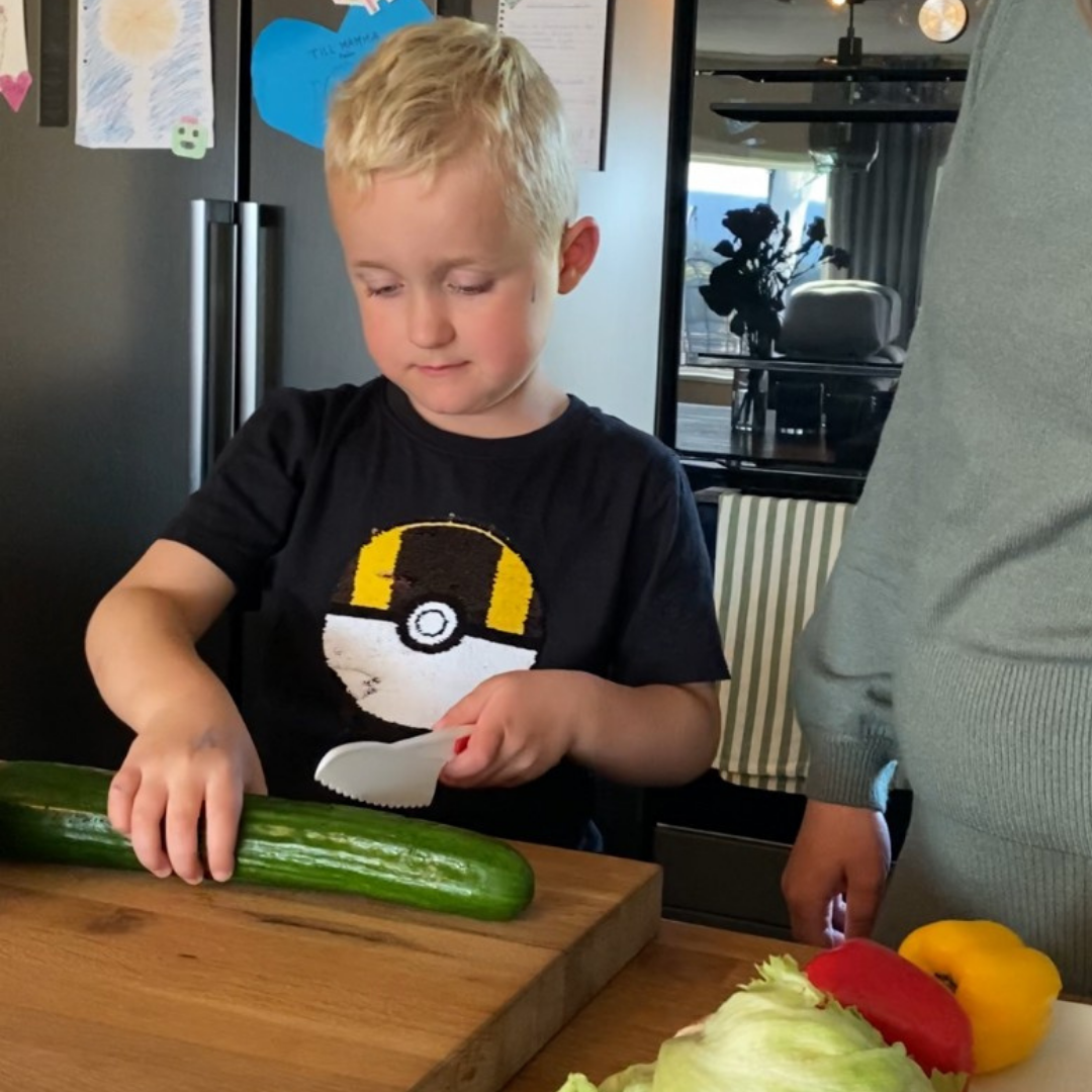 Äntligen ett köksredskap som barnen faktiskt kan använda själva. Vi har provat andra tidigare men de här är överlägset bäst – bra grepp, lagom vassa och känns väldigt säkra. Perfekta att ge bort i present också!