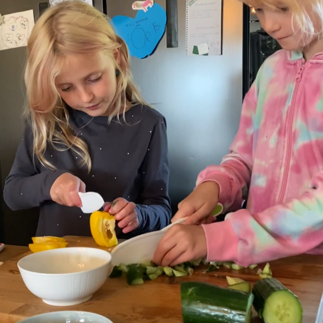 Perfekt för barn från 3 år som vill vara med i köket, lära sig mer om mat och utveckla sin finmotorik på ett säkert sätt.